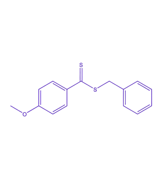 Benzyl 4-Methoxybenzodithioate 是一种具有芳香族二硫代酯结构的化合物,其核心骨架由苄基与对甲氧基苯基通过二硫代甲酸酯基团连接构成。作为 RAFT 可控聚合领域的重要中间体,该化合物凭借对甲氧基修饰的分子结构,实现了链转移活性的精准调控,为聚合物分子量分布控制、链端功能化及反应机理研究提供了关键工具。