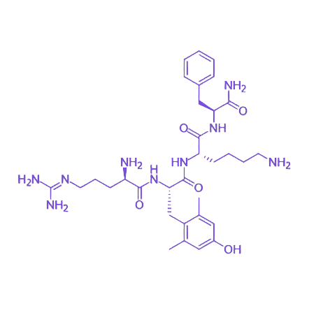 SS-31 多肽是一种由四个氨基酸组成的短肽,其氨基酸序列为 D-Arg-2′,6′-dimethyltyrosine-Lys-Phe-NH₂。作为一种 细胞穿透肽,它能够特异性地定位到线粒体,这一靶向能力使其在调节线粒体功能方面具有独特优势。 SS-31 多肽主要通过与线粒体膜上的 心磷脂 相互作用来发挥其生物学功能。这种特异性相互作用可有效调节线粒体的结构稳定性,进而对线粒体功能产生积极影响,包括维持线粒体正常的能量代谢和抗氧化能力等生理过程。