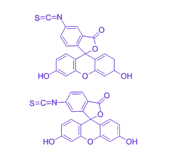 FITC(异硫氰酸荧光素)是一种在科研及工业领域具有重要应用价值的荧光染料,其理化特性与光谱行为使其成为荧光标记和检测技术中的关键材料。该物质的溶解性表现出显著的溶剂依赖性,在水和酒精中易溶,而在丙酮、乙醚及石油醚中仅呈微溶状态。当FITC溶解于水时可能发生分解,此时溶液会发出强烈的绿色荧光;若向该溶液中加入酸,将导致FITC析出沉淀并伴随荧光消失。在碱性水溶液环境中,FITC可能出现荧光猝灭及沉淀现象,但通过再次加碱可使其重新溶解并恢复荧光活性。 从光谱学特征来看,FITC的最大吸收光波长范围为490-495nm,在吸收该波段光能后,会以520-530nm作为最大发射光波长释放出明亮的黄绿色荧光。这一独特的光学特性为其在生物分子标记、免疫检测、细胞成像等应用场景中提供了高灵敏度的信号输出基础,是生命科学研究及临床诊断领域不可或缺的工具试剂。