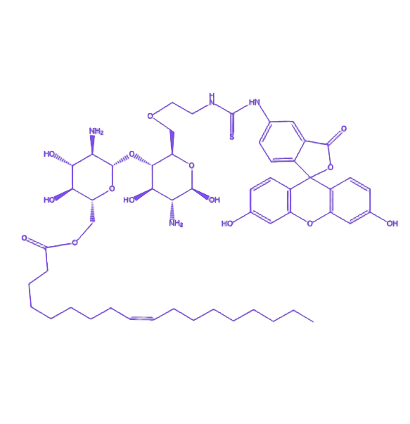 FITC-Chitosan oligosaccharide-Oleic acid 是一种集生物活性、荧光示踪与递送功能于一体的多功能复合物,其通过壳寡糖的生物相容性、油酸的亲脂性及FITC的荧光特性协同作用,在生物医学领域展现出化合物递送与可视化研究的应用潜力。 壳寡糖作为复合物的核心成分之一,具备优异的生物相容性和可降解性,可通过与细胞表面受体的特异性相互作用,发挥潜在的免疫调节和抗菌生物活性,为复合物的生物医学应用奠定基础。油酸的引入赋予复合物亲脂性,能够显著改善材料的膜穿透能力,提升细胞对复合物的摄取效率,同时增强对疏水性化合物的包裹能力,有效提高负载物的稳定性与溶解性。异硫氰酸荧光素(FITC)的标记使复合物具备荧光示踪功能,可在生物实验中实现对化合物在体内分布、代谢及释放过程的实时可视化监测,为药物递送机制研究提供直观的技术支持。此外,油酸赋予复合物一定的表面活性,能够降低溶液表面张力,促进其在界面的吸附与排列,该特性对复合物在乳液、微乳液等分散体系中的应用性能具有重要影响。
