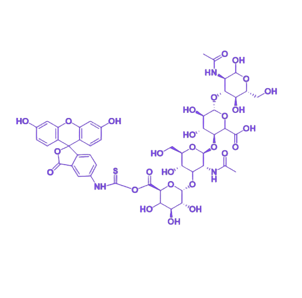 Hyaluronate FITC(HA-FITC)是通过荧光素(FITC)修饰透明质酸(Hyaluronate)获得的功能性化合物,兼具天然多糖的生物特性与荧光标记的示踪功能。透明质酸作为一种天然来源的多糖,其突出优势在于优异的生物相容性和生物可降解性,这使得该化合物在生物材料研发与药物输送系统构建中具有重要应用价值。 合成HA-FITC的核心工艺涉及两步关键反应:首先通过化学修饰在透明质酸分子的羟基或羧基位点引入氨基官能团,随后利用FITC分子的异氰酸酯官能团与上述氨基发生胺基化偶联反应,从而实现荧光基团的稳定接枝。这一合成路径确保了荧光标记的高效性与结构稳定性,为其在生物成像、药物递送示踪等领域的应用奠定了分子基础。