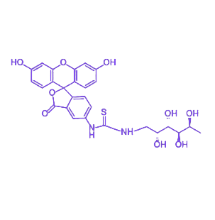 FITC-fucose是由<**异硫氰酸荧光素(FITC)**>与<**岩藻糖(fucose)**>通过化学偶联形成的荧光标记化合物,兼具岩藻糖的生物学靶向性与FITC的荧光示踪功能,是生物医学研究中可视化追踪糖分子动态过程的关键工具。 <**FITC标记特性**>:FITC作为常用荧光染料,呈黄色至橙黄色结晶粉末,易溶于水和酒精,具有490-495nm的最大吸收波长与520-530nm的最大发射波长,可发出明亮黄绿色荧光,具备优异的<**光稳定性**>和<**荧光量子产率**>,确保实验过程中信号的持久与灵敏检测。 <**岩藻糖生物学功能**>:岩藻糖是一种天然六碳糖,广泛存在于生物体内糖蛋白、糖脂等糖复合物中,参与细胞识别、信号传导、免疫调节等重要生理过程,其对特定受体的<**靶向亲和性**>为研究生物分子相互作用提供了分子基础。 <**产品核心优势**>:通过化学连接实现FITC与岩藻糖的稳定结合,既保留岩藻糖的生物活性,又赋予其荧光可视化特性,可直接通过荧光显微镜、流式细胞仪等设备追踪岩藻糖的细胞内代谢途径、跨膜转运机制及细胞间相互作用。 <**生物医学应用**>:在肿瘤研究领域,可特异性识别并定位<**岩藻糖受体高表达细胞**>(如部分肿瘤细胞),为肿瘤早期诊断与治疗机制研究提供直观证据;同时适用于糖生物学基础研究,助力揭示糖基化修饰在生理病理过程中的调控作用,为生命科学研究提供高效可视化技术支撑。