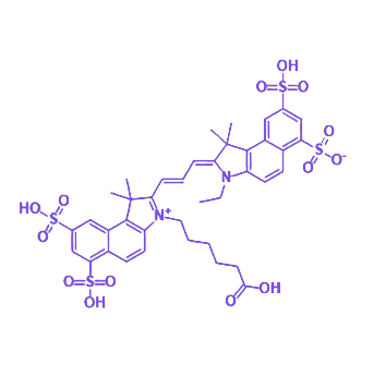 Cy3.5是一种具有独特化学结构和优异光学性能的荧光染料,其核心多聚次甲基桥链结构赋予高荧光强度与稳定性,近红外光吸收发射特性使其在生物医学成像领域具备显著优势,并可通过化学偶联实现对生物分子的高效标记。 化学结构与光学特性:Cy3.5的分子核心由多聚次甲基桥链构成,链内富含共轭双键,通过电子离域效应保障高荧光强度及整体化学稳定性。其吸收与发射光谱均位于近红外区域,该波段光量子能量较低,生物组织穿透过程中与蛋白质、脂质等内生成分的相互作用概率显著降低,可实现较厚样本的深层成像;同时,生物组织在近红外区的自发荧光背景极低,有效减少成像杂散光干扰,提升检测信噪比与空间分辨率。 生物偶联机制:Cy3.5分子表面修饰有琥珀酰亚胺酯等活性基团,可通过酰胺化反应与生物分子的特定官能团(如蛋白质赖氨酸残基的氨基、多肽链氨基、核酸羟基等)形成稳定共价键,构建荧光标记复合物。该偶联过程具有反应效率高、产物稳定性好的特点,适用于多种生物大分子的标记需求。 生物医学应用方向:作为高性能荧光标记物,Cy3.5广泛应用于生物分子动态示踪、蛋白质-蛋白质相互作用研究、细胞内信号通路监测及活体组织成像等领域。其近红外光学特性尤其适用于活体小动物成像及临床前研究,为疾病诊断、药物研发提供高特异性的可视化工具。