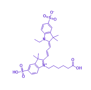 CY3 染料是一种具有特定分子结构和优异光学性能的荧光探针,其核心共轭体系赋予强荧光特性,甲基基团优化水溶性,适用于生物医学领域的荧光成像与检测。 < strong > 分子结构与作用机制 < /strong > :分子架构由庞大共轭体系与三个甲基集团构成。共轭体系作为核心发色团,内部大量离域π电子在吸收光子能量后发生电子跃迁,产生荧光现象,此为决定荧光特性的关键结构;三个甲基集团通过调控分子间作用力,调节染料在水溶液中的溶解度与疏水性,确保其在生物实验常用水性环境中稳定分散。 < strong > 光学性能参数 < /strong > :最大吸收波长约550nm(对应绿光吸收),发射波长约570nm(处于红色光谱范围),呈现明亮红色荧光信号。具备高荧光量子产率,可高效将吸收光子转化为荧光发射,提供清晰检测信号;良好的光稳定性使其在长时间光照下不易因光漂白丧失信号,化学稳定性保障其在多样实验条件下结构稳定,满足长时间成像与观察需求。 < strong > 应用领域 < /strong > :在荧光显微镜成像中,能清晰勾勒细胞、组织轮廓;在流式细胞术里,可准确标记细胞表面抗原或细胞内分子,助力细胞分选与分析,是生物医学研究中重要的荧光标记工具。