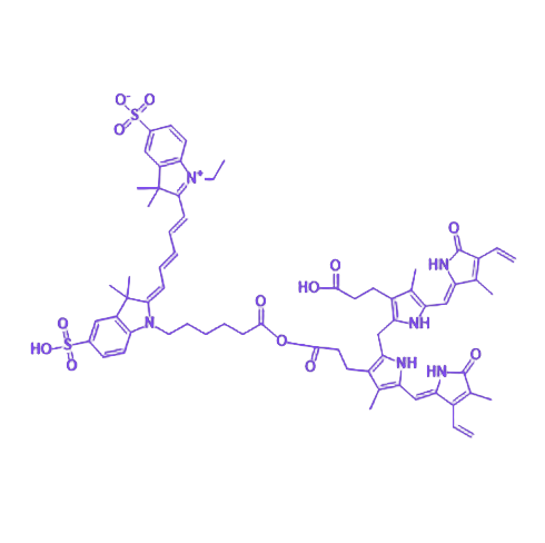 CY5-bilirubin 是通过化学偶联方法将近红外荧光染料 CY5 与胆红素结合形成的复合分子,其利用 CY5 上的活性基团(如琥珀酰亚胺酯)与胆红素特定官能团反应实现稳定连接,在生物医学研究中具备重要应用价值。 该复合物的核心特性在于整合了 CY5 的近红外荧光性能与胆红素的生物学活性。近红外光具有优异的生物组织穿透性,而 CY5 作为荧光标记可实现对胆红素代谢过程的实时动态追踪,从吸收、运输到转化、排泄的完整路径均能通过荧光信号清晰呈现。 在应用层面,CY5-bilirubin 可作为活体成像与组织成像的关键工具,通过精准定位胆红素在器官、组织及细胞内的分布,直观揭示胆红素相关的生理病理机制。这一特性为研究胆红素代谢异常相关疾病提供了可视化研究手段,有助于推动相关疾病诊断与治疗策略的开发。