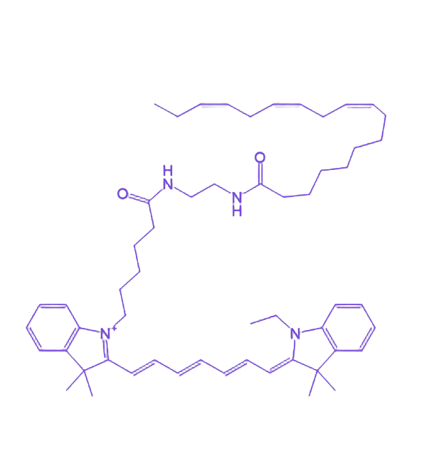 CY7-LA是由近红外荧光染料CY7与人体必需多不饱和脂肪酸亚麻酸(LA)通过化学偶联形成的功能性共轭物,兼具荧光示踪与靶向递送双重特性。该复合物可利用CY7的高荧光量子产率及光稳定性实现生物分子的精准标记与动态示踪,同时依托亚麻酸的生理活性实现化合物在生物体系中的靶向递送,在生物成像与荧光检测领域具有重要应用价值。 在化学稳定性方面,CY7-LA在常规化学环境中表现出良好的稳定性,但易受强氧化剂、强酸或强碱等极端条件影响。例如,亚麻酸结构中的酯键在强酸或强碱环境下可能发生水解反应,导致分子结构破坏并引发荧光性能改变。 光稳定性方面,尽管CY7母体染料具备一定的抗光漂白能力,但CY7-LA在长时间强光照射下仍会出现荧光信号逐渐衰减的光漂白现象。因此,产品储存与使用过程中需严格避光,建议在避光条件下进行操作与保存,以确保其光学性能与结构完整性。