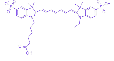 Cyanine7(Cy7)是一种近红外荧光染料,属于花菁染料家族,其化学结构以多甲川链为核心,由奇数个共轭双键(-C=C-)组成,典型为7个,分子两端带有含氮杂环结构,对稳定共轭体系及调节光学性能起关键作用。 Cy7单体的光学特性表现为特定的激发与发射波长,激发波长约750 nm,发射波长约773 nm,处于近红外一区,该波段的光具有较强的组织穿透能力,适用于活体深层组织成像场景。 其分子设计中,多甲川链的共轭体系决定了染料的近红外光谱特性,而含氮杂环结构通过空间位阻和电子效应进一步优化了光稳定性与光谱参数,使Cy7在生物医学成像领域具备重要应用价值。