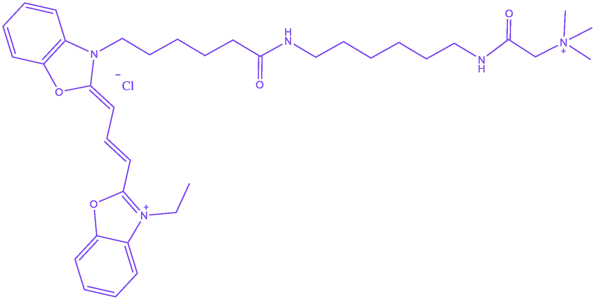 花菁染料CY2-胆碱是一种融合CY2荧光团光学特性与胆碱基团生物功能的荧光标记探针,可实现活细胞内生物分子及生理过程的高灵敏度靶向可视化监测。其通过胆碱基团与生物膜或受体的特异性作用实现靶向识别,借助CY2荧光团的强光稳定性与高量子产率,在生物成像领域提供高时空分辨的观测工具。 该探针在磷酸盐缓冲液(PBS, pH 7.4)中具备良好水溶性,紫外-可见吸收峰约492 nm,荧光发射峰约510 nm,斯托克斯位移约18 nm,光谱特性由花菁母核的共轭多甲川链结构决定。季铵盐形式的胆碱基团通过增强分子极性提升水相体系中的分散性与稳定性,并提供生物分子识别位点。 在应用中,CY2-胆碱主要作为荧光标记试剂用于生物成像研究,其作用机制基于胆碱基团对细胞膜磷脂成分的特异性亲和能力,通过与细胞表面或胞内的胆碱转运蛋白结合实现靶向标记。利用CY2荧光团约0.68的高量子产率,可在共聚焦激光扫描显微镜或流式细胞术平台中实现对细胞摄取、膜转运及相关信号通路的高时空分辨观测。