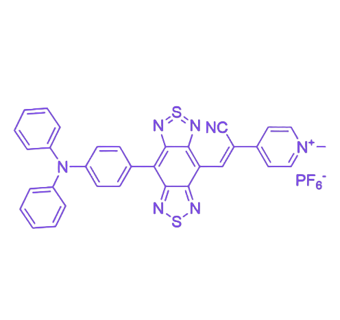 TBQ-Py 是一种基于聚集诱导发光(AIE)机制设计的光动力治疗探针型染料,兼具荧光成像与活性氧(ROS)生成双重功能,属于典型的“成像治疗(theranostics)”模块。其核心设计围绕共轭骨架构建,结合AIE特性与光动力活性,可通过末端修饰实现靶向递送与生物分散性改善,在生物医学领域展现出诊断与治疗一体化应用潜力。 TBQ-Py名称中的“TBQ”通常指代具备良好共轭结构的芳环接受体或多环电子受体框架(如苯并喹啉/苯并噻唑类似结构),“Py”部分代表吡啶或吡咯/吡啶衍生基团,常用作电子供体、增强分子内电荷转移(ICT)或提供活性修饰位点。通过将AIE特征与光动力活性结合,该探针实现了荧光成像与ROS生成的协同功能,核心共轭骨架提供较强光吸收能力,理想激发区域为可见光或近红外区。 AIE特性赋予TBQ-Py独特的光学行为:稀溶液状态下分子旋转/振动自由度高,能量易通过非辐射方式耗散导致荧光较暗;而在分子聚集、嵌入脂质膜、纳米颗粒或生物大分子环境中,内部结构运动受限使辐射跃迁通道强化,荧光显著增强,这一特性使其在纳米材料及细胞内部具备高信噪比成像优势。作为光动力剂,TBQ-Py在激光或特定波长照射下可激发产生三重态或其他活性电子状态,通过与氧气、细胞内还原物或自由基反应生成单线态氧(¹O₂)或其他ROS,进而破坏细胞膜、诱导线粒体损伤或促进细胞凋亡,适用于微环境调控及治疗监测。值得注意的是,其形成的纳米颗粒或聚集态因更强共轭与受限振动有利于系间交叉跃迁(ISC),从而更高效促进ROS生成。 生物应用层面,TBQ-Py可通过末端修饰(如NHS酯、马来酰亚胺、叠氮N₃、DBCO、PEG等)与抗体、肽段、纳米载体或水凝胶系统偶联,以实现靶向递送能力或改善生物分散性。其荧光信号可用于实时监控递送过程与定位,光照后ROS生成则可触发治疗响应,这种集成像(诊断)与治疗功能于一体的特性,使其成为精准医学领域具有重要价值的theranostics工具。