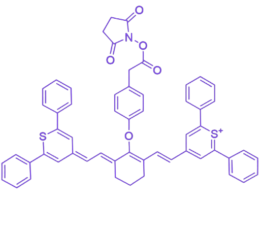 IR-1061-NHS 是一款以 IR-1061 菁类结构为光学核心并引入琥珀酰亚胺酯(NHS)活性基团的荧光染料,兼具氨基特异性标记能力与高效光学性能,通过构建“光学报告单元-活性连接臂”一体化分子,凭借高特异性反应与深层成像优势,成为生物医学靶向研究的关键工具。 其核心价值源于结构协同,光学核心 IR-1061 以噻喃环为电子受体、苯环为供体,形成高度共轭体系,确保荧光发射峰稳定锚定在 1061 nm 左右的 NIR-II 波段,此波长光组织穿透深度达厘米级,自发荧光干扰低,成像信噪比明显优于传统染料。引入的 NHS 基团可在温和条件(pH 7.0-8.0)下与生物分子的伯氨基(-NH₂)发生特异性酰化反应,形成稳定的酰胺键,且反应效率高,无需复杂催化剂即可完成偶联。 经性能验证,该染料光学性能与母体 IR-1061 高度一致,光稳定性良好,标记后仍保持强荧光信号输出,纯度通常≥95%,以毫克级规格供应,生物相容性良好,标记产物对细胞毒性低。 在应用中,其可特异性偶联含氨基的抗体、多肽、蛋白等生物分子,构建靶向探针,如偶联肿瘤特异性抗体后,可实现深层肿瘤的准确定位;标记荧光抗体后,能用于免疫荧光分析与术中病灶识别。搭配 1064 nm 激光激发时,可清晰呈现靶向病灶的解剖学信息与分子表达特征,其“高特异性氨基标记+深层成像”的双重优势,为生物医学分子靶向研究与疾病准确诊断提供了高效解决方案。