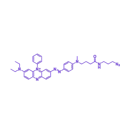 BHQ3-N3是由非荧光猝灭剂BHQ-3核心与高反应活性叠氮基团(-N₃)构成的功能分子,兼具宽谱荧光猝灭能力与生物分子修饰兼容性,适用于荧光标记及生物分析领域。 BHQ-3核心基于多芳基偶氮结构形成620-730 nm宽谱吸收带,覆盖红色至近红外光区,最大吸收峰约672 nm,可高效淬灭Cy5、Alexa Fluor 647等近红外荧光团信号。叠氮基团作为关键反应位点,通过铜催化叠氮-炔环加成反应(CuAAC)或无铜点击化学(SPAAC)与炔基修饰生物分子(如抗体、寡核苷酸)共价偶联,形成稳定三唑键,支持多样化生物分子修饰需求。 该分子在620-730 nm波长范围内对荧光团的淬灭效果显著,点击化学反应的灵活性使其适配不同类型生物分子修饰场景。无铜点击化学(SPAAC)的应用可避免金属催化剂对生物样本的潜在损伤,提升生物相容性。 使用中需注意其水相溶解性限制,建议通过添加助溶剂优化配方;储存时需满足低温避光条件,溶液状态下稳定性较差,需现配现用以保证功能活性。