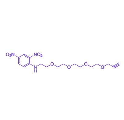 化学性质方面,该化合物表现出优异的水溶性与有机溶剂兼容性,可溶于DMSO、DMF、乙醇等多种常用溶剂,为不同实验体系下的操作提供便利。其双功能结构设计使分子既能通过DNP基团实现免疫标记,又能借助炔基进行化学偶联,在生物分子功能化修饰中展现出独特优势。PEG链的亲水性特征可显著改善修饰后生物分子的水溶性及抗非特异吸附能力,进而提升检测灵敏度与信号稳定性,是构建高性能免疫分析与靶向递送系统的理想工具。
