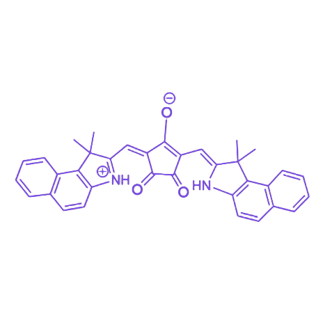 克酮酸染料 CBI-3 是一种高性能有机共轭染料,其核心结构以克酮酸为电子受体单元,外围引入芳香供体基团形成 D-A-D 型分子框架,具备分子内电荷转移特性,在可见光至近红外区域表现出高吸收能力与红移发射特性,兼具出色的电子迁移性能、光热转换效率及化学稳定性,在光电与生物材料领域具有重要应用潜力。 该染料的核心分子设计采用 D-A-D 型结构,以克酮酸作为电子受体单元,通过引入吲哚或噻吩等芳香供体基团构建完整共轭体系,赋予分子高平面度和优良的电荷传输能力。其光学特性表现为吸收峰位于 650-720 nm 区间,发射峰延伸至 750-800 nm 近红外区域,这种光谱特性使其特别适用于近红外光学应用场景。 在理化性能方面,CBI-3 具有优异的化学稳定性,可耐受长期光照和氧化环境,保障器件在使用过程中的性能稳定性;同时展现出良好的有机溶剂溶解性,在氯仿、二氯甲烷、氯苯等常用溶剂中溶解度优异,通过侧链修饰可进一步改善水溶性及薄膜成型性能,为材料加工和器件制备提供灵活调控空间。 基于上述特性,CBI-3 在多个领域具备应用潜力:在光电领域,可作为有机光伏器件的活性层材料、OLED 发光层组分及光敏化太阳能电池的光敏剂;在生物医学领域,通过化学修饰提升水溶性和生物相容性后,可用于深层组织成像、靶向标记以及光热/光动力治疗研究。此外,该染料还可与聚合物或纳米材料复合,构建功能化光电或生物材料体系,拓展其应用范围。其高光稳定性与热稳定性确保了在长期使用中光电性能和荧光特性的稳定保持,作为克酮酸染料系列的重要成员,CBI-3 凭借高吸光性、良好电荷传输性和可调控的分子设计空间,成为新一代光电与生物材料的核心候选。
