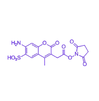 AF350-NHS(Alexa Fluor 350-N-羟基琥珀酰亚胺酯,CAS:200554-19-4)是 Alexa Fluor 系列中短波长蓝色荧光标记试剂的代表,凭借高亮度、高特异性及良好兼容性,成为多色成像与准确检测的核心工具。其核心优势在于优化的分子设计,Alexa Fluor 350 母核赋予优异短波长荧光性能,NHS 酯基团提供高效标记活性,磺酸基团增强水溶性,有效突破传统短波长染料的信号强度与兼容性局限,为生物检测与生命科学研究提供可靠解决方案。 该试剂化学名称为Alexa Fluor 350-N-羟基琥珀酰亚胺酯,CAS号200554-19-4,分子式C16H14N2O9S,常温下呈灰黄色固体状态,纯度可达95%。荧光性能参数表现突出,激发波长346 nm,发射波长442 nm(蓝色区域),荧光量子产率高达0.80,信号强度显著优于传统蓝色荧光染料如AMCA。活性基团方面,NHS酯基团作为关键反应位点,在pH 7.0-8.0的温和条件下可与氨基快速反应,形成稳定的酰胺键,标记效率超90%,且标记过程不影响生物分子的天然活性。磺酸基团的引入大幅提升了试剂的水溶性,可在低浓度DMSO(≤5%)辅助下应用于水溶液体系,有效降低细胞毒性。 使用过程中需注意避光操作,346 nm紫外激发光易导致染料光降解;水溶液需现配现用,以避免NHS酯基团发生水解反应;储存条件为-20℃密封棕色瓶,未开封产品保质期24个月,开封后建议1个月内用完,禁止反复冻融。该试剂主要应用于免疫检测、多色成像等场景,在细胞多靶点多色分析、低丰度靶标免疫检测、功能材料蓝色荧光修饰等领域展现出显著优势,为准确生物检测与生命科学研究提供高效解决方案。