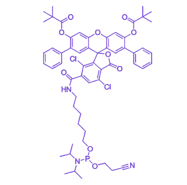 SIMA phosphoramidite, 6-isomer 是一种功能化荧光试剂,通过连接臂将6-异构体SIMA荧光基团与亚磷酰胺活性基团共价结合,专为多通道检测中核酸探针(如FISH探针、qPCR探针)的制备设计,具备5'端准确标记、荧光性能适配多通道、合成兼容性佳及便捷储存使用等核心优势。 5'端准确标记方面,6-异构体纯度>98%,无同分异构体干扰,可专一实现寡核苷酸链5'端荧光标记,标记位点单一(仅5'端),能有效避免荧光基团对核酸杂交特异性的空间阻碍,且适配各类核酸序列(无需依赖T碱基)。 荧光性能适配多通道表现为发射紫色荧光(激发390-410nm,发射430-450nm),荧光量子产率约0.78,摩尔吸光系数达8.5×10⁴ M⁻¹cm⁻¹,与FAM(494nm/518nm)、Cy3(550nm/570nm)等常用染料光谱重叠率<2%,可无缝融入多通道检测体系。 合成兼容性佳体现在亚磷酰胺基团符合常规核酸固相合成标准,与dA、dC、dG、dT等核苷亚磷酰胺单体兼容,合成效率>99%/步,无需额外活化,适配自动化核酸合成仪。 便捷储存与使用需在-20℃避光、无水、密封(充氮气)条件下储存,保质期12个月;使用时用无水乙腈配制成0.1M储备液,在核酸合成的5'端延伸阶段加入,合成后经脱保护、HPLC或PAGE纯化,即可获得5'端标记产物,操作符合常规固相合成规范。