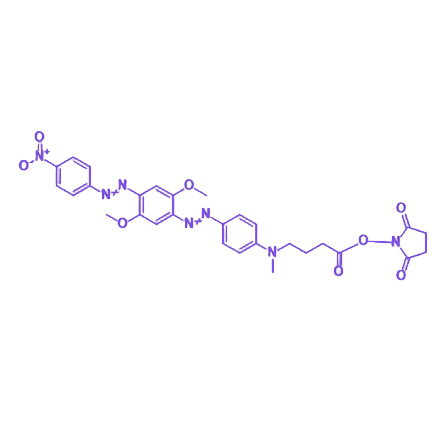BHQ-NHS是分子生物学与生物化学研究领域的关键化合物,其核心功能在于通过黑洞猝灭剂(BHQ)的高效荧光吸收特性与N-羟基琥珀酰亚胺(NHS)的生物分子偶联能力,实现对荧光信号的精准调控与生物分子标记。该化合物通过结构设计整合了BHQ的荧光共振能量转移(FRET)猝灭机制与NHS活性酯基团的共价反应特性,为高灵敏度生物检测提供技术基础。 作用机制方面,BHQ作为特异性猝灭剂,可通过FRET效应高效吸收并耗散荧光团发射光,显著降低检测体系的背景噪音;NHS基团则能在温和条件下与蛋白质、核酸等生物分子的氨基发生酰胺化反应,实现BHQ与目标分子的稳定共价连接,确保标记过程的高效性与生物相容性。 物理化学特性表现为粉末状外观,具备良好的化学稳定性,便于储存与实验操作。其分子结构的优化设计保障了在水溶液及常见缓冲体系中的溶解性,适配多样化的生物实验环境。 应用领域广泛覆盖分子探针构建,典型案例包括实时荧光定量PCR(qPCR)体系中,与荧光标记引物/探针协同作用,通过荧光信号的动态变化实时监测核酸扩增进程;在免疫分析、核酸杂交等技术中,可作为猝灭元件提升检测的信噪比与定量准确性,为生命科学研究提供可靠的工具支持。