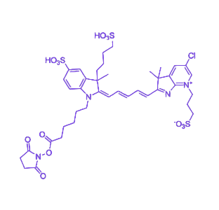 APDye680-NHS Ester 是一种高性能近红外荧光染料衍生物,通过 NHS 活性酯基团与生物分子伯胺的特异性反应实现靶向标记,具备优异的光稳定性与生物相容性,适用于多种生物医学荧光检测场景。其深蓝色粉末状外观便于识别,易溶于无水 DMSO 等有机溶剂,储存需严格避光、干燥以维持活性,使用时应避免反复冻融并现配现用。 标记反应通过琥珀酰亚胺酯基团与伯胺形成稳定酰胺键,可高效偶联抗体、蛋白质、氨基修饰核酸等生物分子,推荐反应 pH 控制在 8.0-9.0 以保障标记效率,且反应体系需排除 Tris、甘氨酸等含胺缓冲液,防止竞争性抑制。 该染料荧光激发波长约 679 nm、发射波长 702 nm,处于近红外“生物光学窗口”,能够穿透深层组织并显著减少自发荧光干扰,信噪比优于可见光染料。其高纯度特性确保实验结果的可靠性与重复性,可广泛应用于免疫荧光成像、小动物体内示踪、流式细胞分析等领域,支持与多波段染料联合使用以实现多重检测。