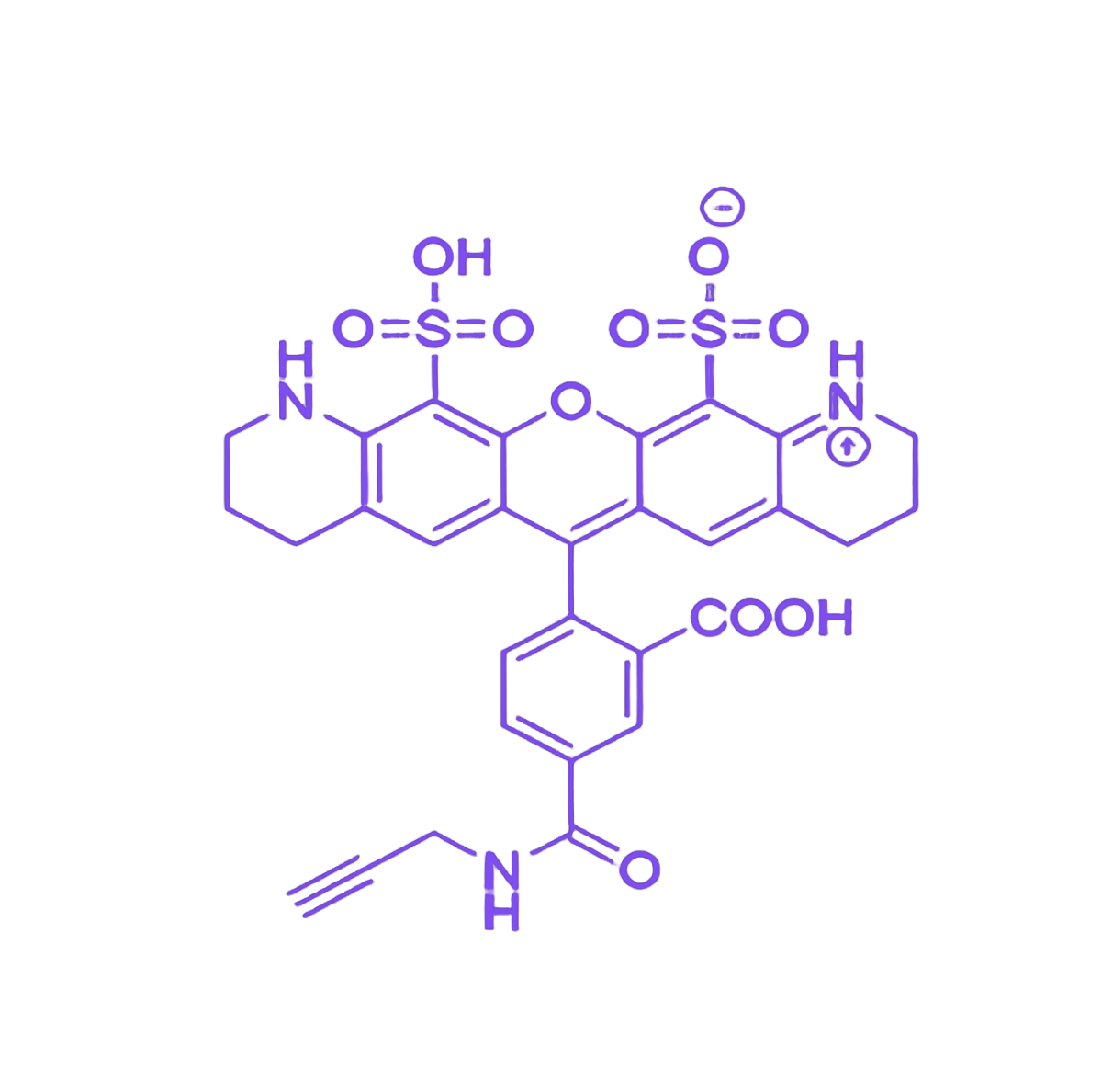 APDye532-Alkyne 是一种集 橙黄色荧光信号 与 点击化学反应活性 于一体的功能性荧光探针,通过柔性连接臂将 APDye532 荧光染料与末端炔基(-C≡CH)共价偶联,可实现复杂生物样本中靶标分子的高特异性、高灵敏度标记与检测。其核心设计在于利用特定波长荧光母体规避自发荧光干扰,并通过高效点击化学反应实现生物分子的精准偶联,同时借助柔性亲水连接臂优化探针性能,适配多种生物检测场景。 APDye532 作为荧光母体,其 激发波长(~532nm) 与 发射波长(~550nm) 组合有效避开生物样本(如细胞色素、胶原)的自发荧光区间,显著提升检测 信噪比,解决绿色荧光探针在复杂体系中易受干扰的问题。末端炔基提供 点击化学 活性位点,可通过 铜催化叠氮-炔烃环加成反应(CuAAC) 或 无铜点击反应(SPAAC) 与含叠氮基团(-N₃)的生物分子(蛋白质、核酸、糖链等)高效偶联,反应特异性极强,仅与叠氮基团作用,不与氨基、巯基等常见生物基团发生交叉反应。 探针的连接臂通常采用聚乙二醇链结构,兼具 柔性 与 亲水性,既可消除荧光染料与炔基间的空间位阻干扰,又能减少探针在生物体系中的非特异性吸附,保障标记反应的选择性与检测准确性。反应条件温和,在常温、pH 6.5-8.5 范围内即可高效进行,对生物分子活性破坏极小,尤其适用于低丰度靶标(如微量膜蛋白、稀有序列核酸)的精准标记。该探针可广泛应用于 荧光成像、流式细胞分析 等多种检测场景,为复杂生物样本的高灵敏、高特异性分析提供可靠工具。