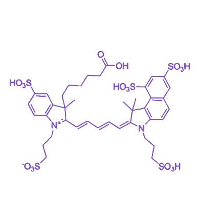 APDyeFluor660-acid是基于近红外荧光染料APDyeFluor660的功能化衍生物,其末端修饰羧基(-COOH)活性基团,可通过酰胺化反应与胺类分子或载体材料共价偶联,结合了近红外染料高亮度、低背景及光稳定性优势,适用于生物成像、分子标记及材料修饰等领域。 该产品的 近红外光谱特性 表现为激发波长约645 nm,发射波长集中在660 nm左右,处于近红外波段,能够有效降低生物组织自发荧光干扰,确保高信噪比成像;同时具备更深的组织穿透能力,特别适合深层组织成像需求。 其 化学修饰性能 主要依赖末端羧基基团,可通过EDC/NHS等标准偶联反应与含氨基的生物分子或功能材料实现稳定连接,为荧光标记蛋白、核酸探针构建及纳米载体表面修饰提供灵活的化学修饰位点,满足高灵敏度与高特异性实验要求。 在 应用场景 方面,广泛适用于蛋白质标记、抗体偶联、核酸探针制备、细胞膜成像及纳米颗粒表面荧光化改性等实验,通过赋予目标体系稳定且强烈的近红外荧光信号,支持体内外动态追踪及Diagnosis成像研究。