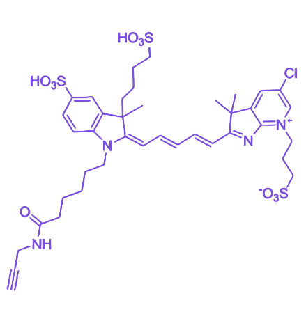 APDye680-Alkyne是一种基于近红外荧光染料APDye680的端基炔衍生物,具备高亮度、光稳定性与低背景噪声特性,其末端炔基(-C≡CH)可通过铜催化点击化学(CuAAC)与叠氮修饰分子实现特异性共价偶联,广泛适用于生物分子荧光标记及成像研究。 该产品的光学性能表现为激发峰约675 nm、发射峰约680 nm,处于近红外光谱区,此特性赋予其深层组织穿透能力及低自发荧光背景优势,为生物成像提供高信噪比基础。炔基官能团的引入构建了可靠的化学反应位点,配合CuAAC点击化学的温和反应条件,可在复杂生物体系中实现高选择性、高效率的共价标记,且不影响目标分子活性。 在应用场景中,APDye680-Alkyne可用于蛋白质标记、抗体偶联、核酸探针构建、多肽及小分子修饰,以及纳米颗粒和功能材料的表面荧光化改性。通过与叠氮分子的快速点击反应,能生成稳定的荧光标记产物,适用于体内外高灵敏度成像、细胞定位及动态追踪实验。相较于传统NHS酯或MAL偶联方法,其点击化学策略展现出更高的生物相容性与反应速度,结合近红外发射特性,特别适合体内追踪及复杂体系多参数分析。