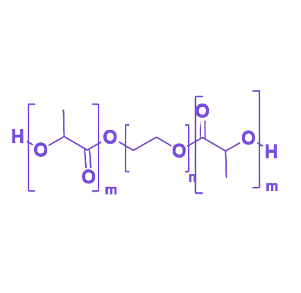 PDLLA-PEG-PDLLA是一种由两个聚-DL-乳酸(PDLLA)嵌段与一个聚乙二醇(PEG)嵌段有序连接构成的三嵌段共聚物,其分子结构赋予材料典型的双亲性特征,在生物医学领域展现出结构稳定性与生物功能性的协同优势。 该共聚物的疏水链段PDLLA通过其化学结构为材料提供坚实的结构支撑,确保材料在复杂环境中维持稳定形态;同时,PDLLA链段具有可控的降解性能,可在生理条件下逐步分解,为药物控释、组织修复等应用提供关键特性。 与之互补的PEG亲水性链段显著改善材料的水溶性,促进其在水溶液体系中的均匀分散;更重要的是,PEG链段赋予材料优异的生物相容性,能够有效降低生物体免疫反应及排斥风险,为该共聚物在药物递送载体、组织工程支架等生物医学领域的应用奠定重要基础。