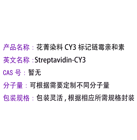 | 产品名称 : | Streptavidin-CY3 花菁染料CY3标记链霉亲和素 |