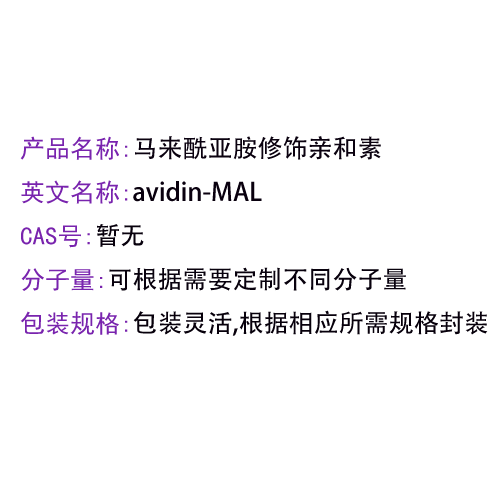 | 产品名称 : | avidin-MAL 马来酰亚胺修饰亲和素 |
